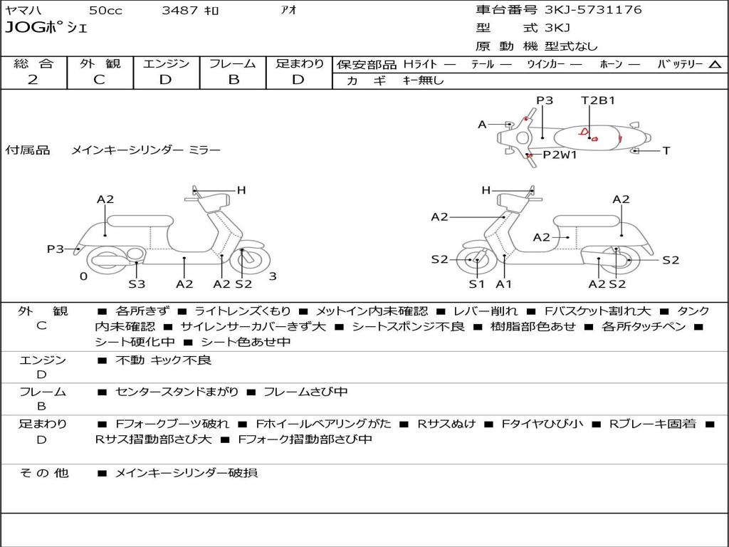 | Номер рамы / VIN | 3KJ-5731176 |