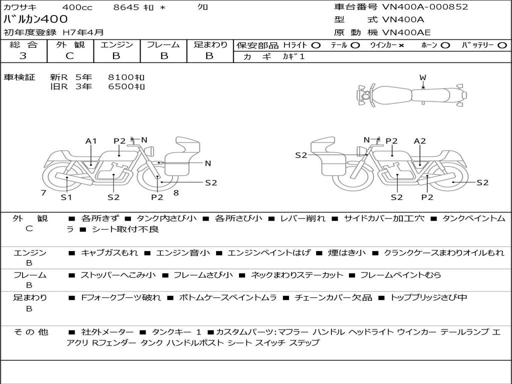 | Номер рамы / VIN | VN400A-000852 |