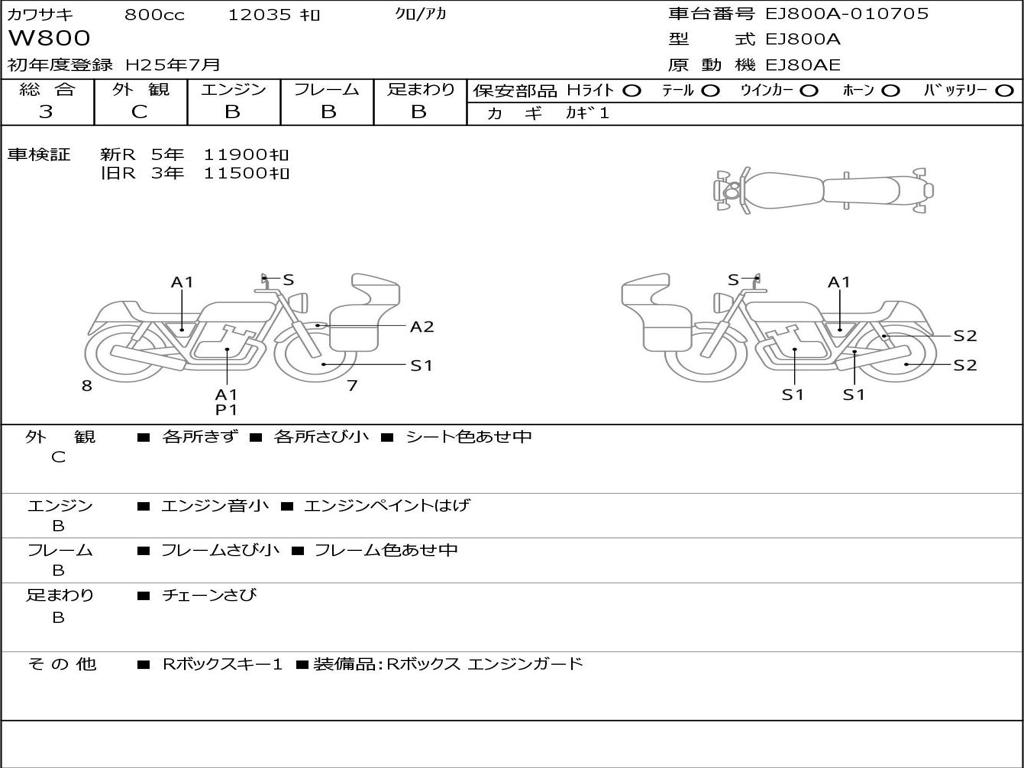 | Номер рамы / VIN | EJ800A-010705 |