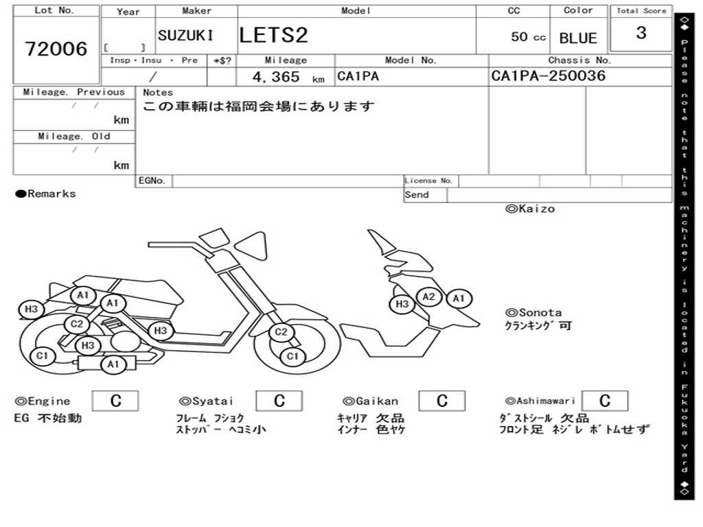 | Номер рамы / VIN | CA1PA-250036 |