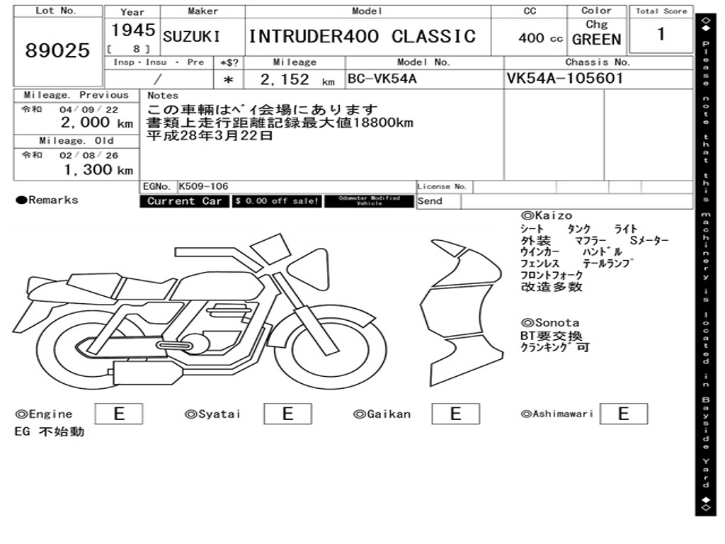 | Номер рамы / VIN | VK54A-105601 |