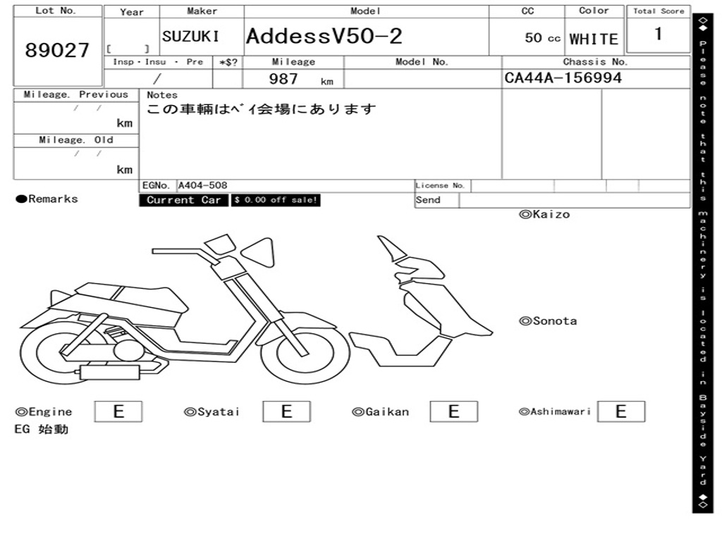| Аукцион | ARAI BAYSIDE |