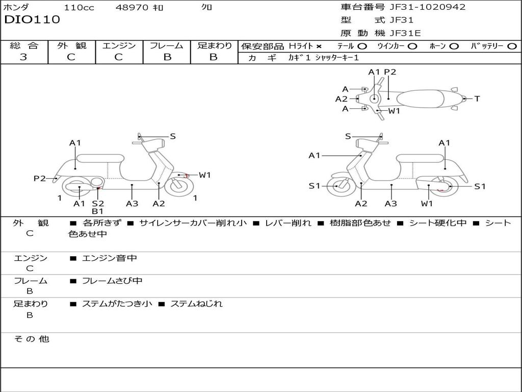 | Номер рамы / VIN | JF31-1020942 |