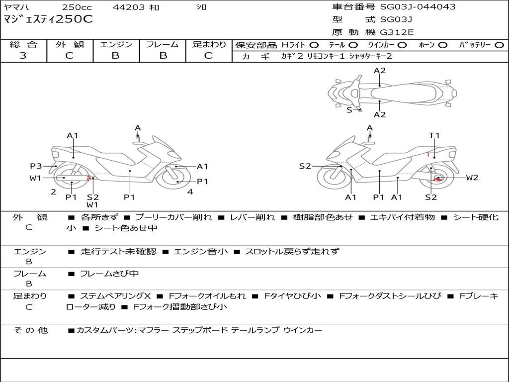 | Номер рамы / VIN | SG03J-044043 |