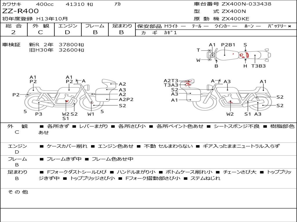 | Номер рамы / VIN | ZX400N-033438 |