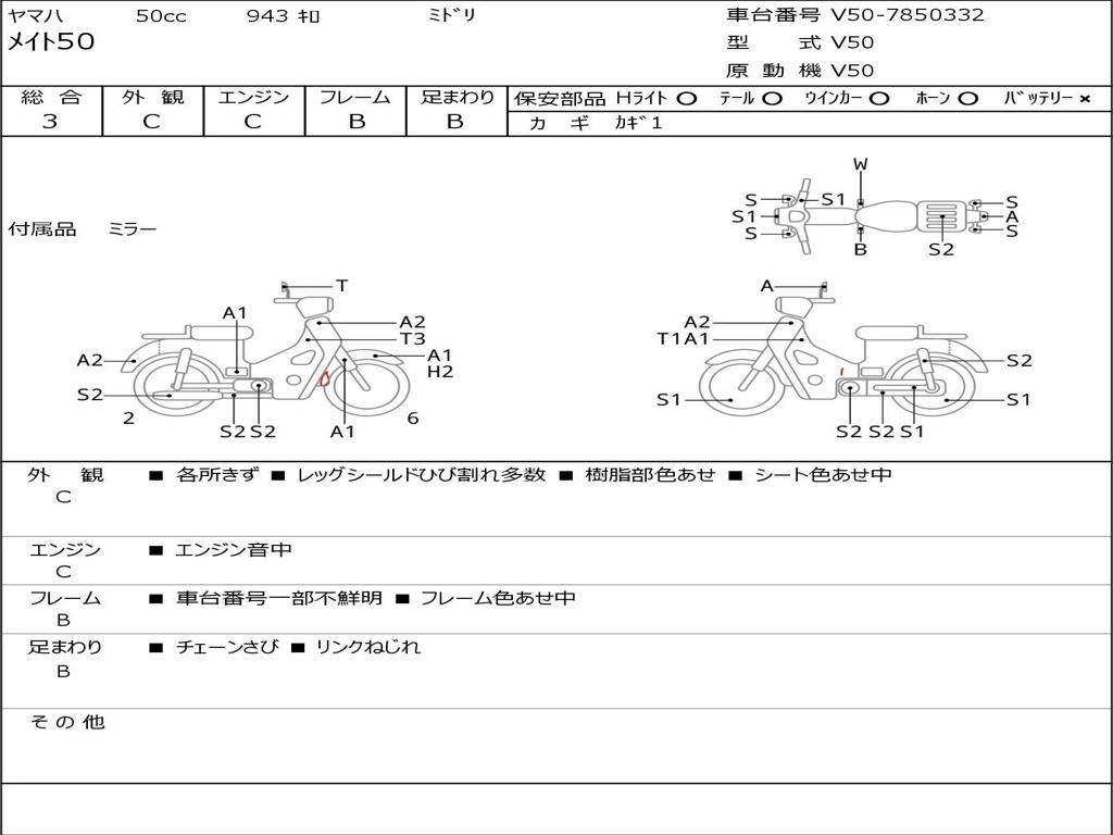 | Номер рамы / VIN | V50-7850332 |