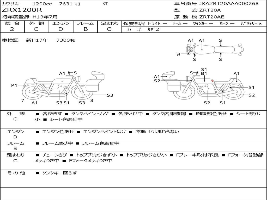 | Номер рамы / VIN | JKAZRT20AAA000268 |