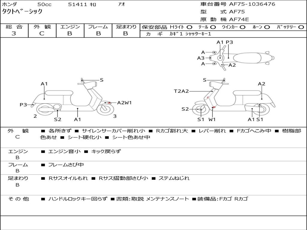 | Номер рамы / VIN | AF75-1036476 |