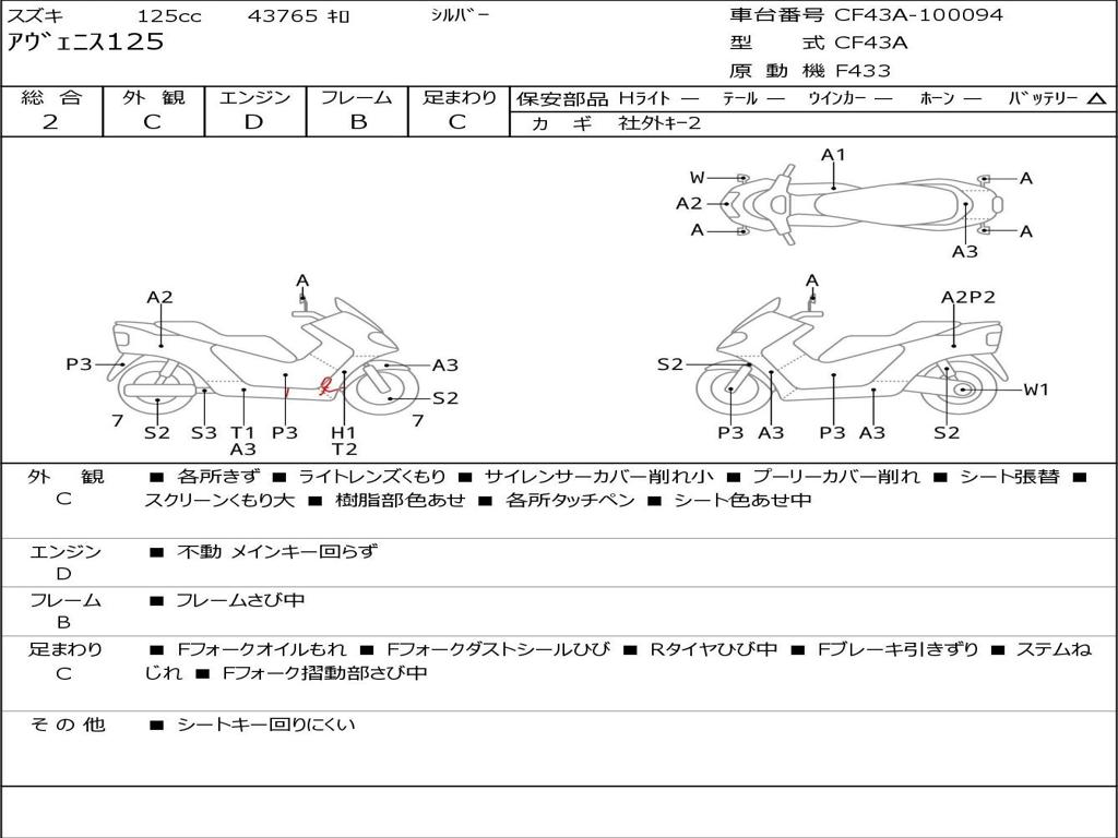 | Номер рамы / VIN | CF43A-100094 |