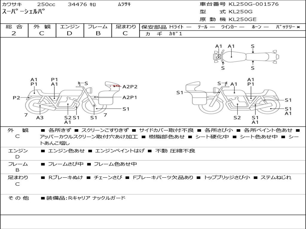 | Номер рамы / VIN | KL250G-001576 |