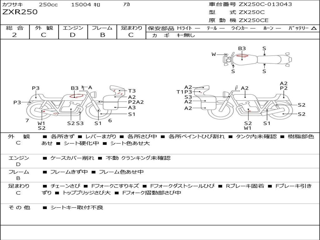 | Номер рамы / VIN | ZX250C-013043 |