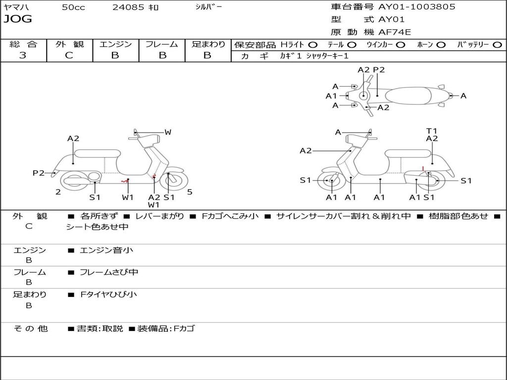 | Номер рамы / VIN | AY01-1003805 |