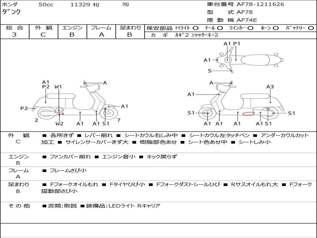 | Номер рамы / VIN | AF78-1211626 |