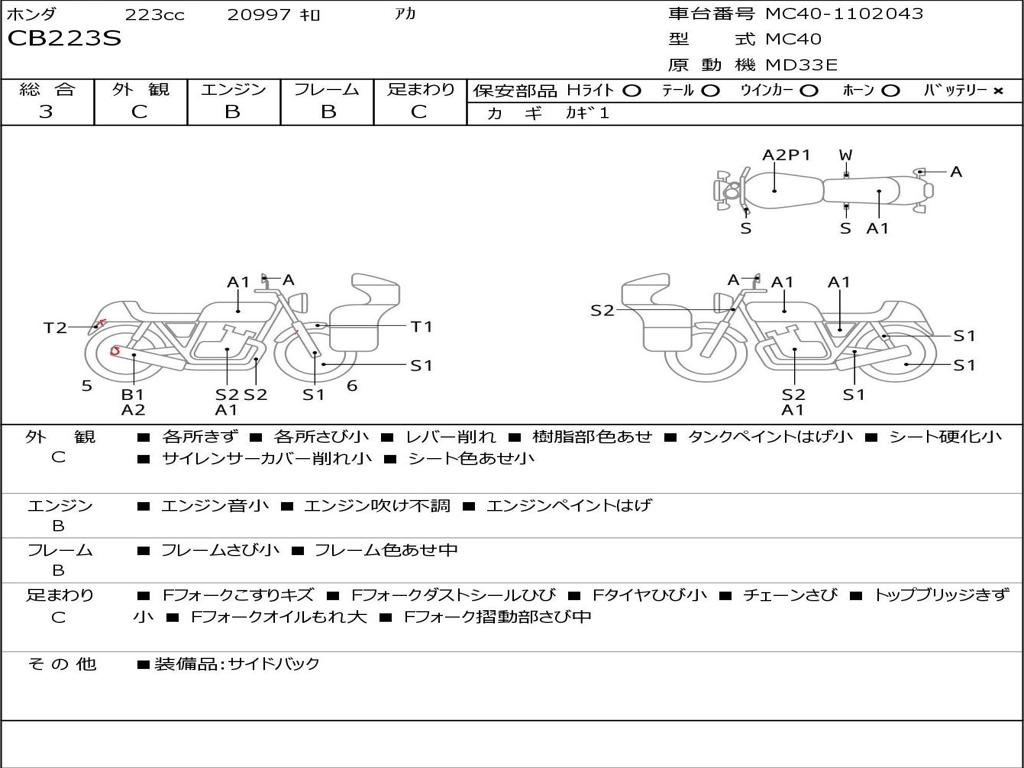 | Номер рамы / VIN | MC40-1102043 |