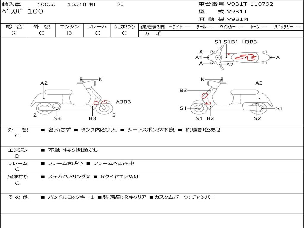 | Номер рамы / VIN | V9B1T-110792 |