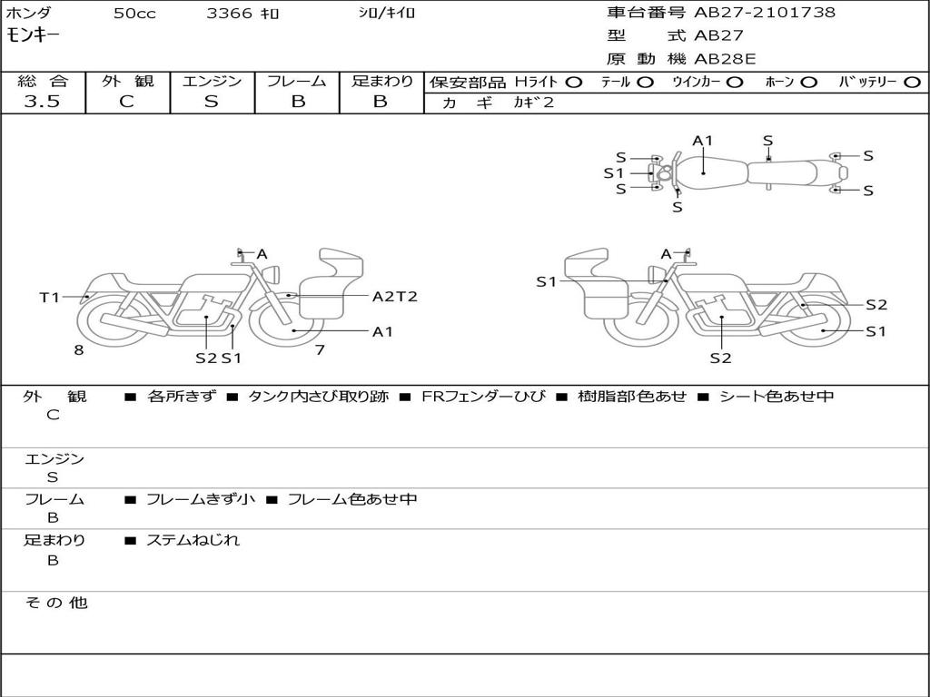 | Номер рамы / VIN | AB27-2101738 |