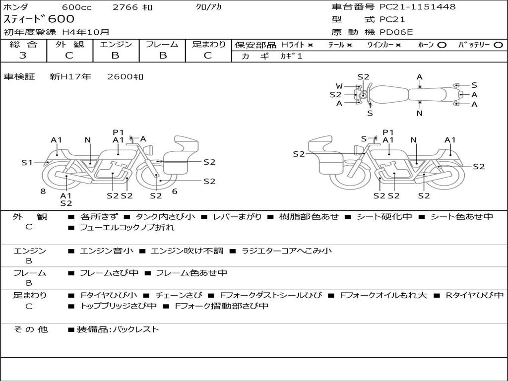 | Номер рамы / VIN | PC21-1151448 |