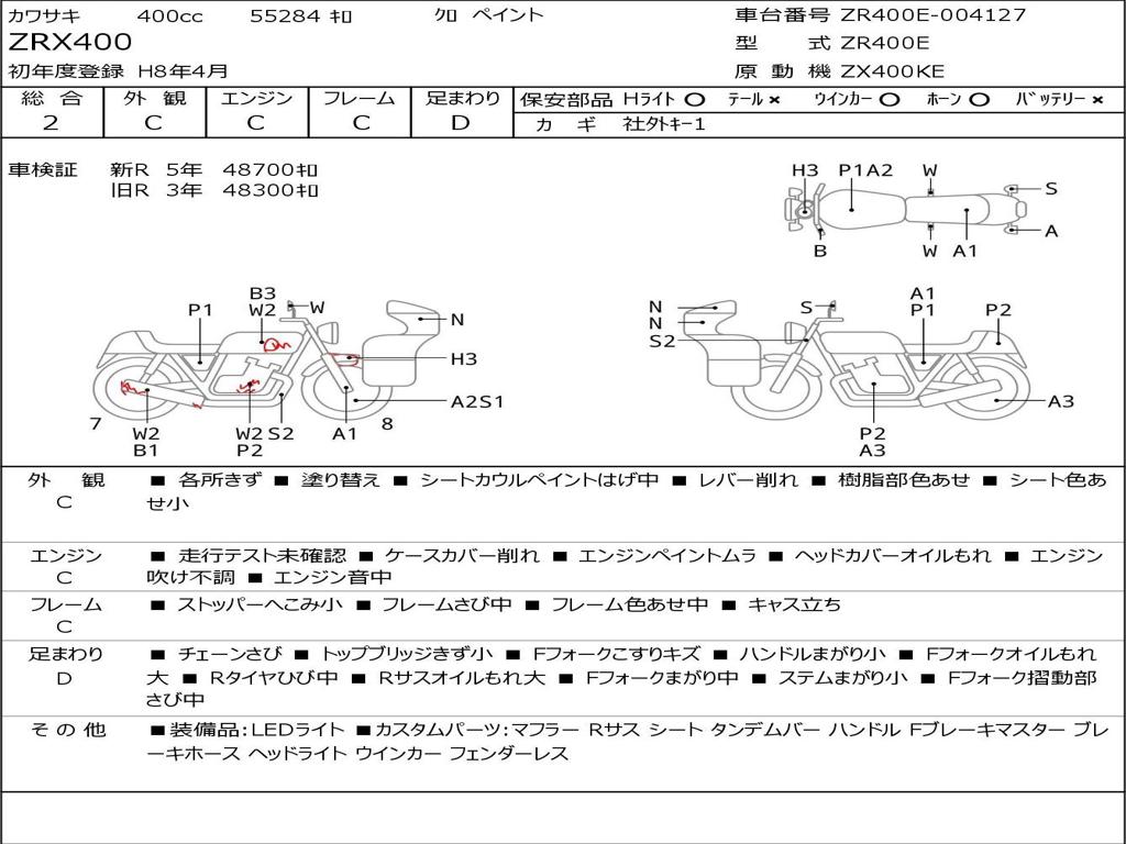 | Номер рамы / VIN | ZR400E-004127 |