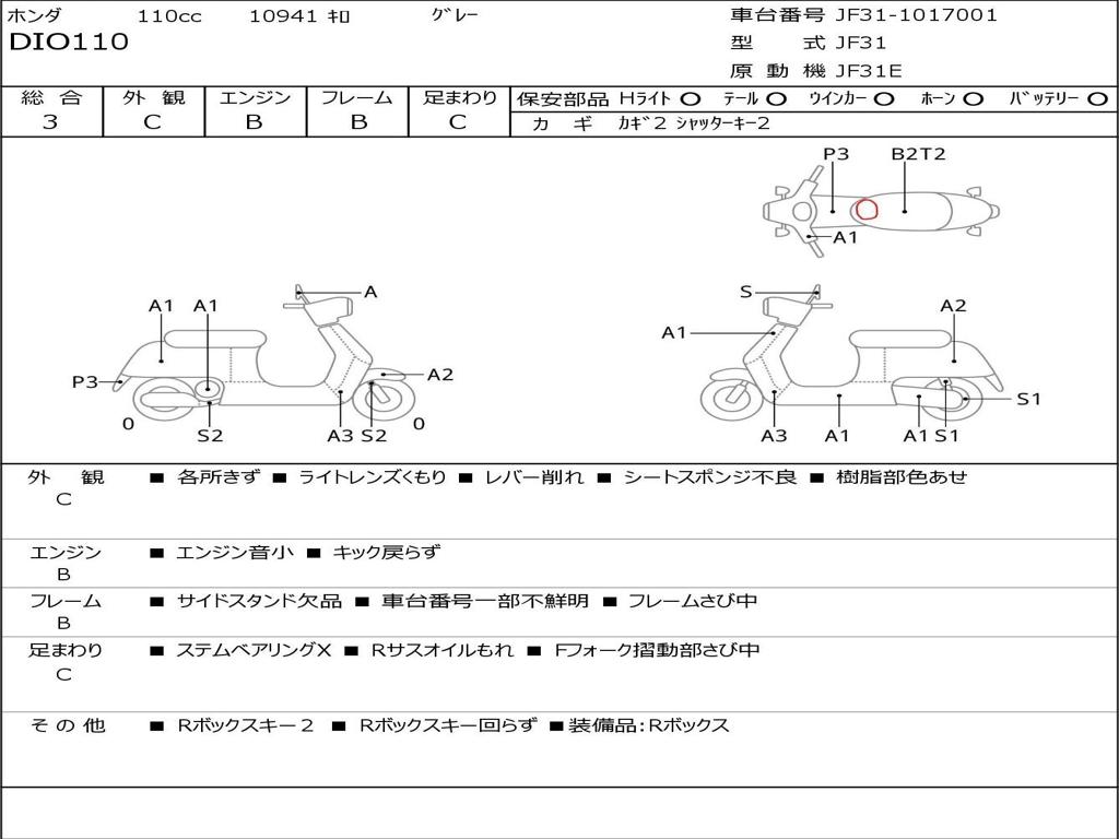 | Номер рамы / VIN | JF31-1017001 |
