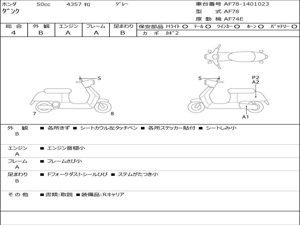 | Номер рамы / VIN | AF78-1401023 |