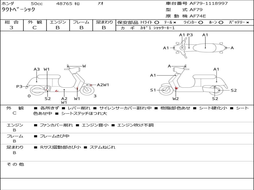 | Номер рамы / VIN | AF79-1118997 |