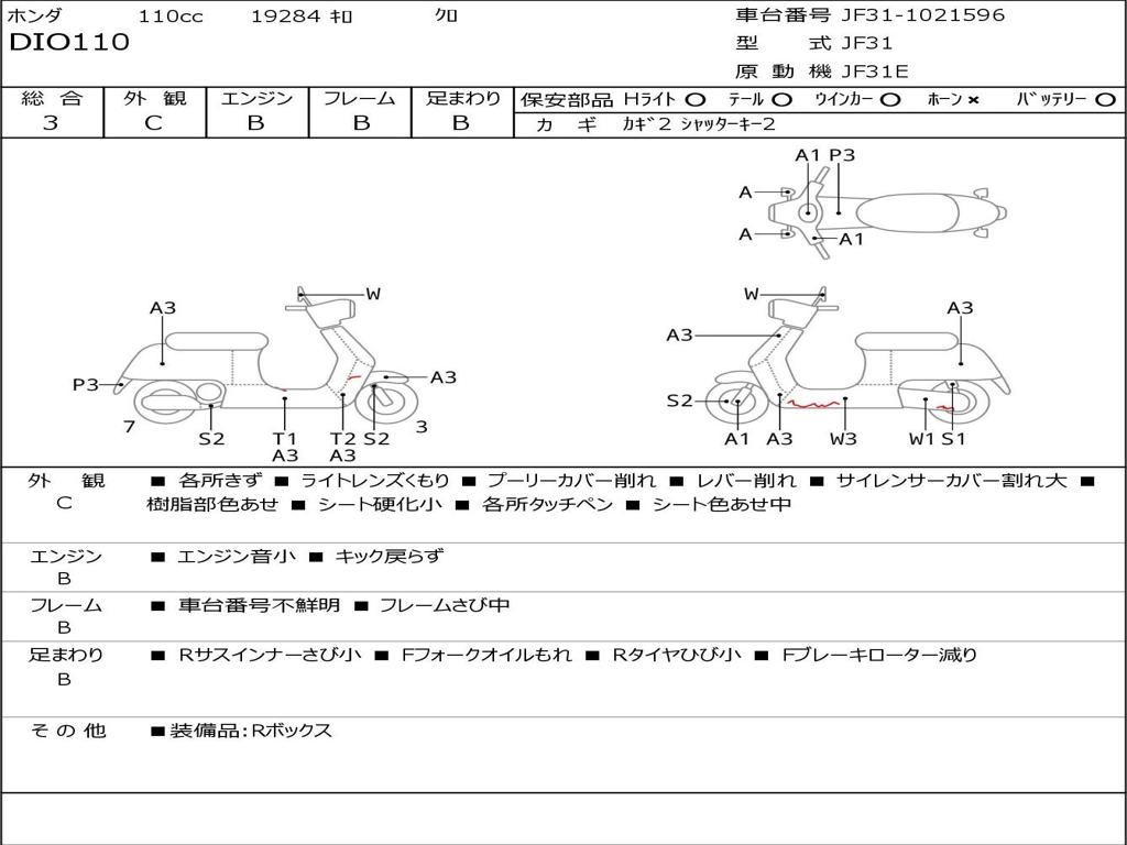 | Номер рамы / VIN | JF31-1021596 |