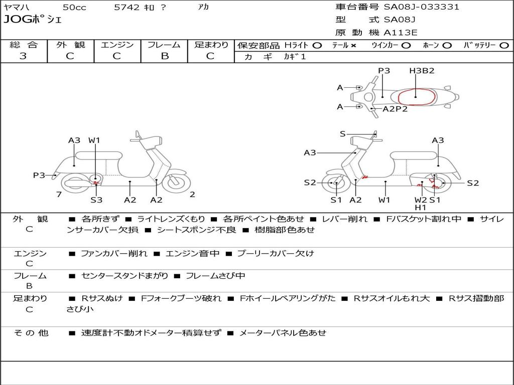 | Номер рамы / VIN | SA08J-033331 |