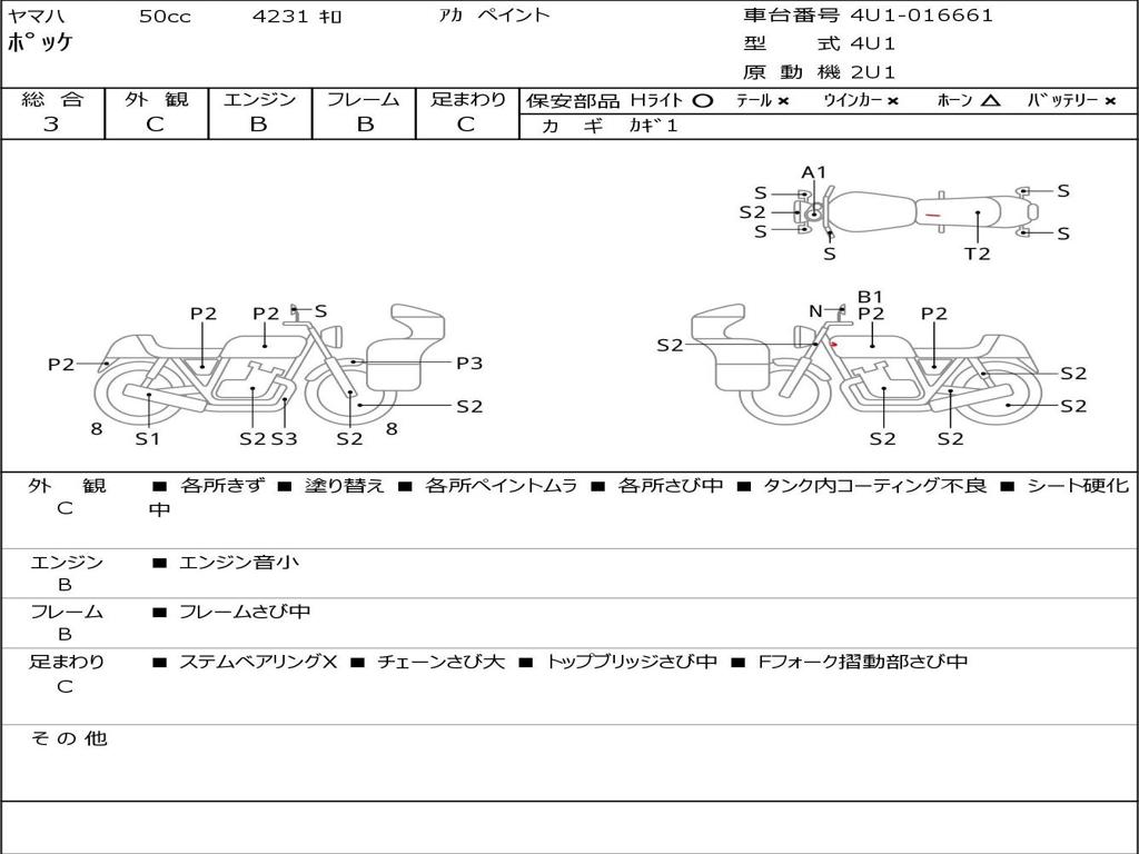 | Номер рамы / VIN | 4U1-016661 |