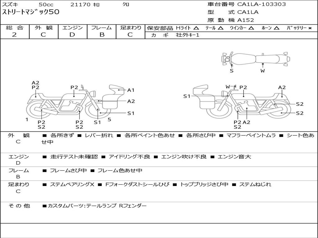 | Номер рамы / VIN | CA1LA-103303 |