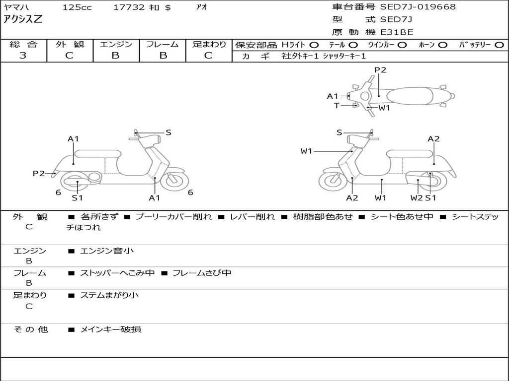 | Номер рамы / VIN | SED7J-019668 |
