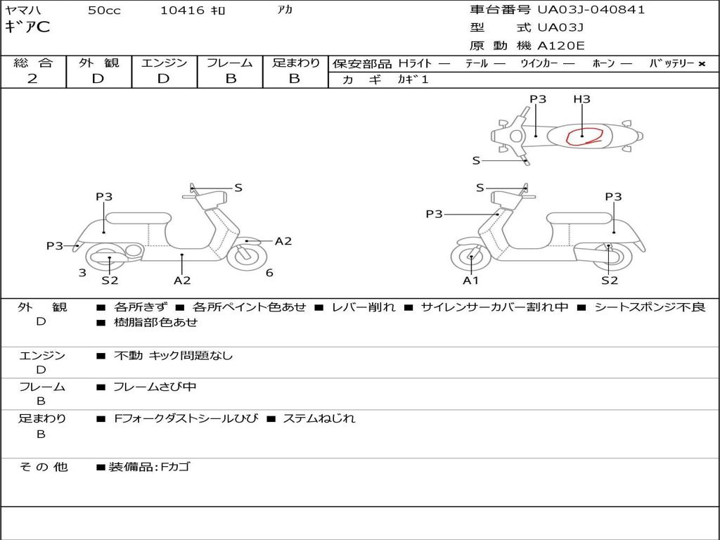 | Номер рамы / VIN | UA03J-040841 |