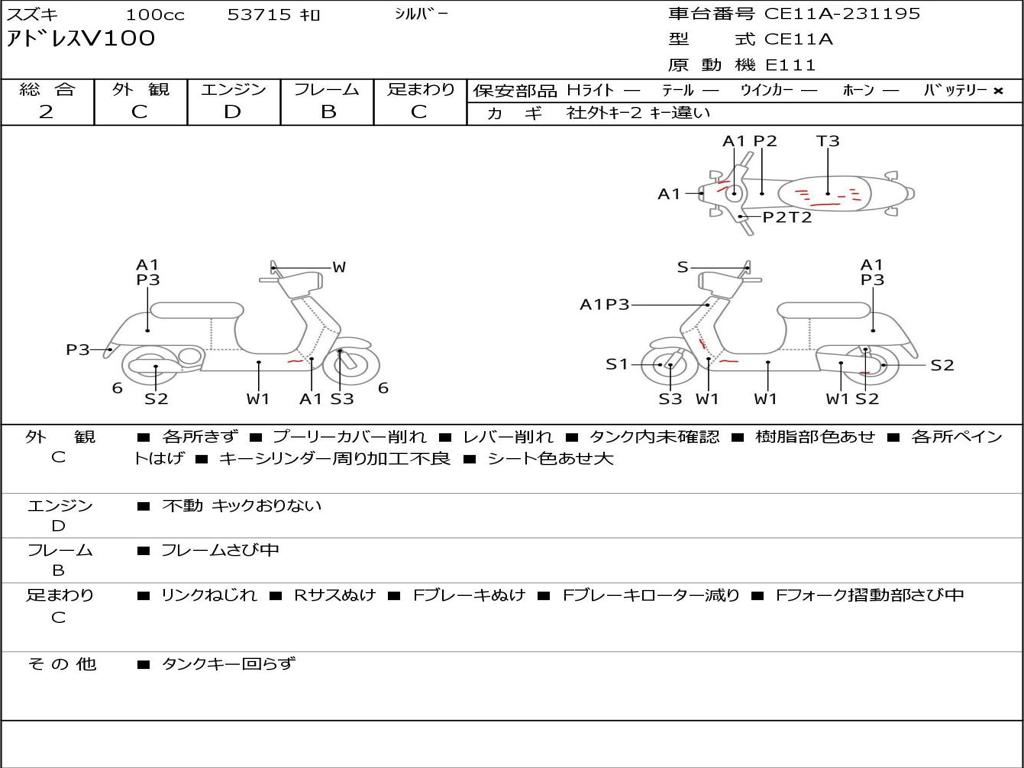 | Номер рамы / VIN | CE11A-231195 |