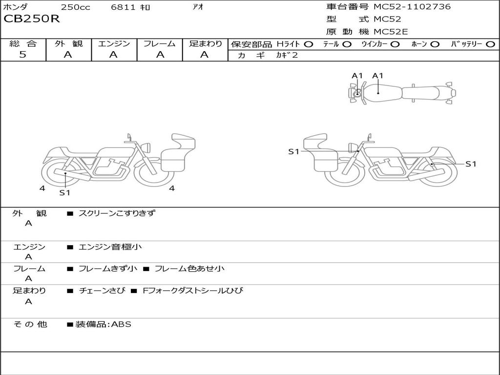 | Номер рамы / VIN | MC52-1102736 |