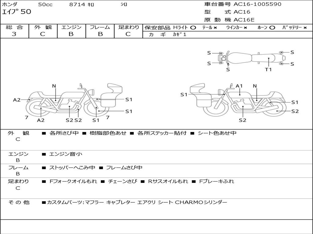 | Номер рамы / VIN | AC16-1005590 |
