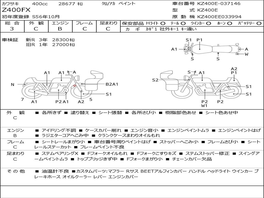| Номер рамы / VIN | KZ400E-037146 |
