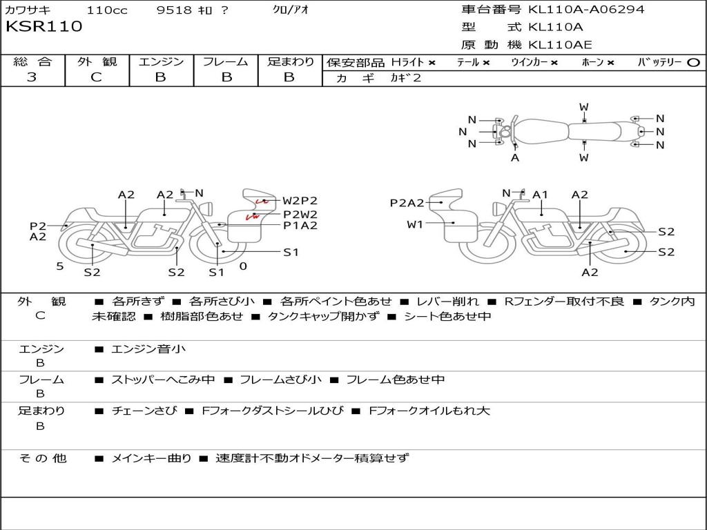 | Номер рамы / VIN | KL110A-A06294 |