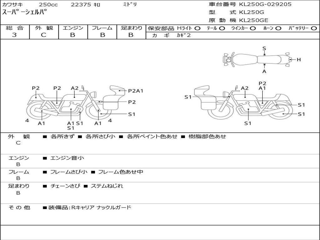 | Номер рамы / VIN | KL250G-029205 |