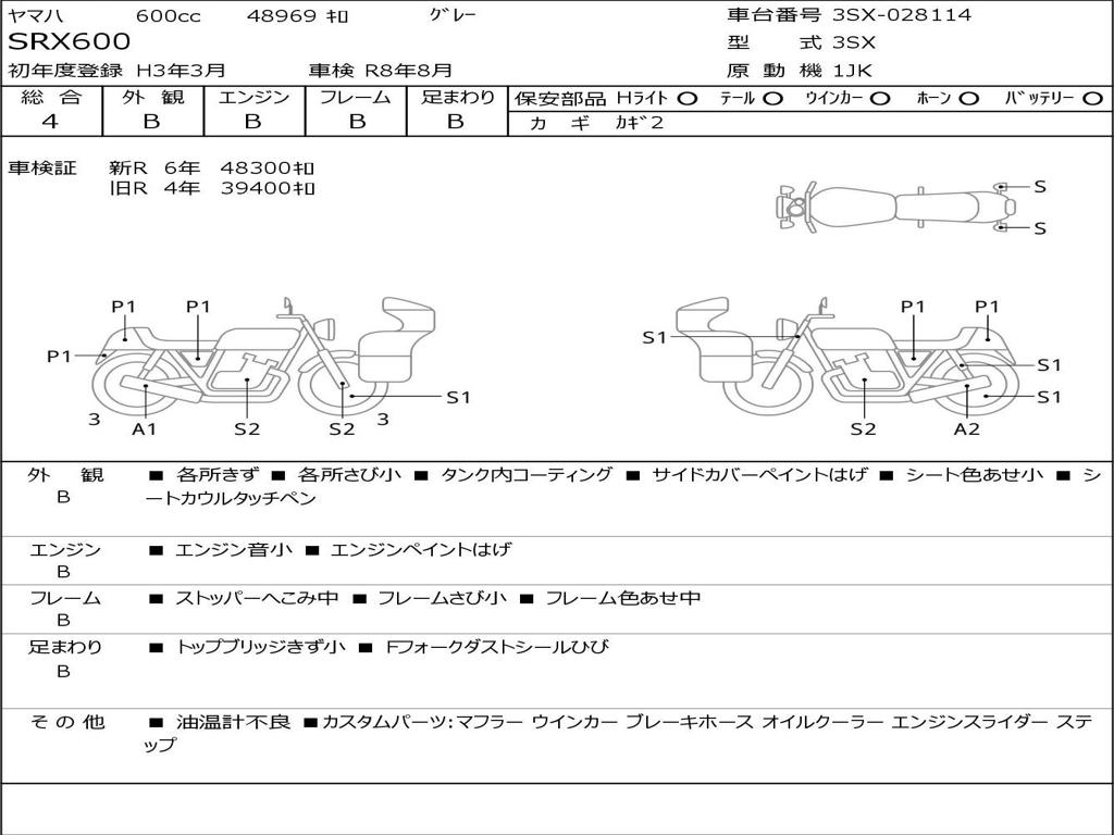 | Номер рамы / VIN | 3SX-028114 |