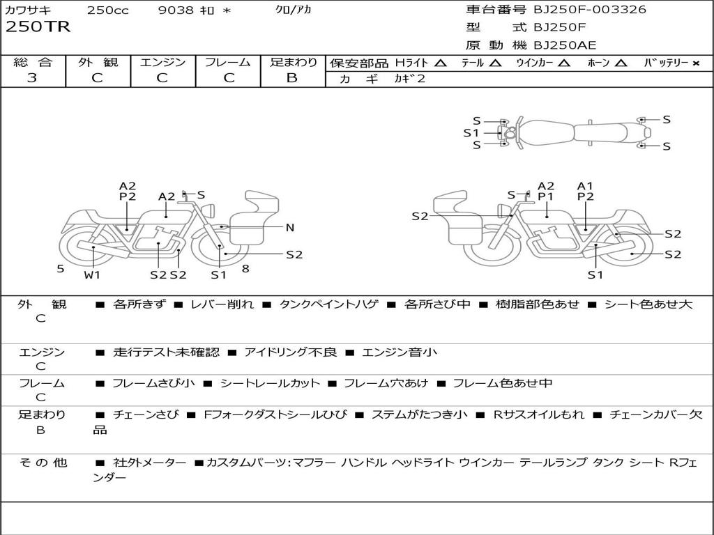 | Номер рамы / VIN | BJ250F-003326 |