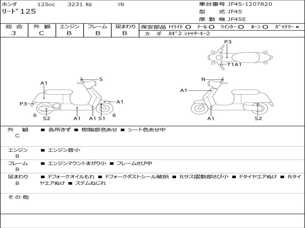 | Номер рамы / VIN | JF45-1207820 |