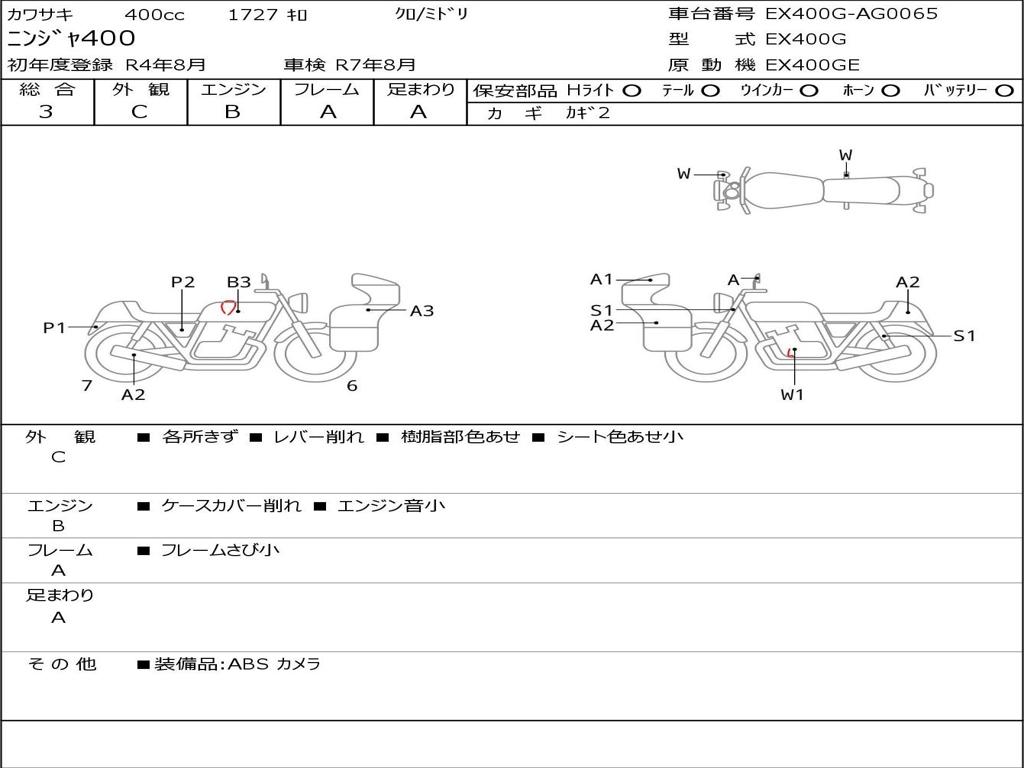 | Номер рамы / VIN | EX400G-AG0065 |