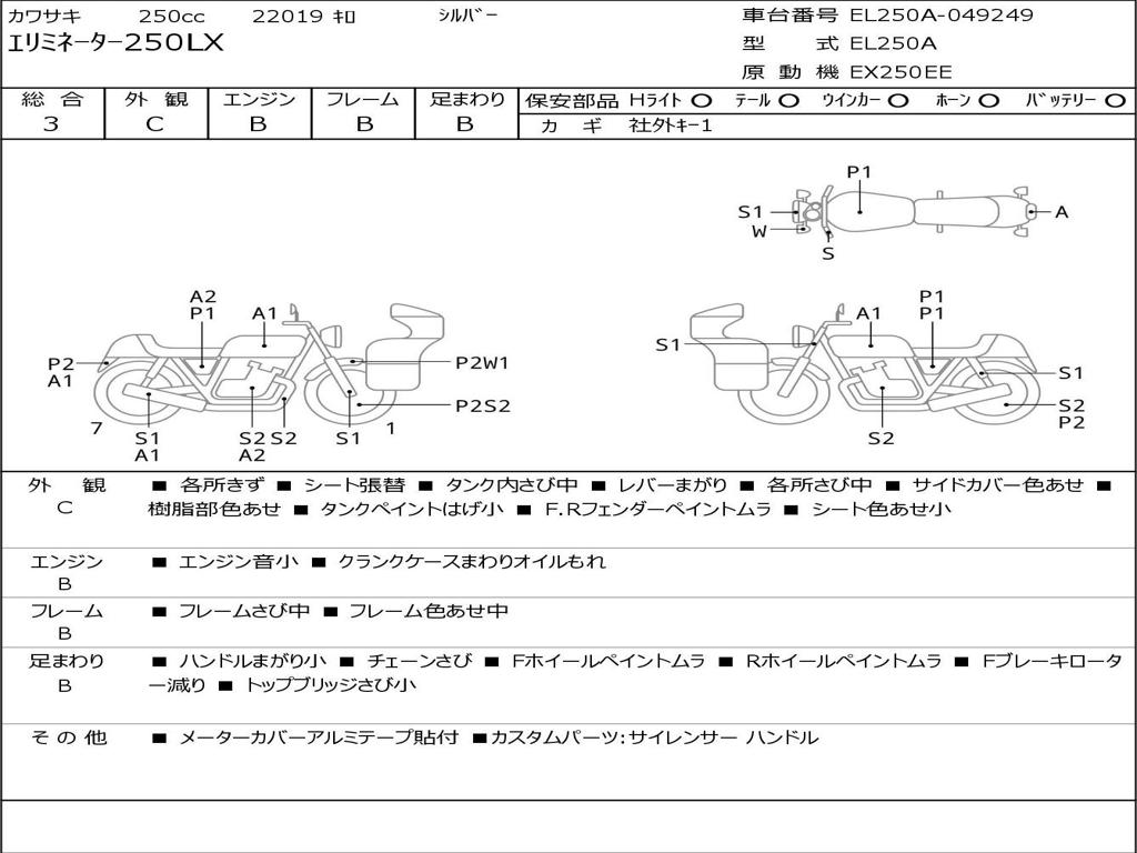 | Номер рамы / VIN | EL250A-049249 |