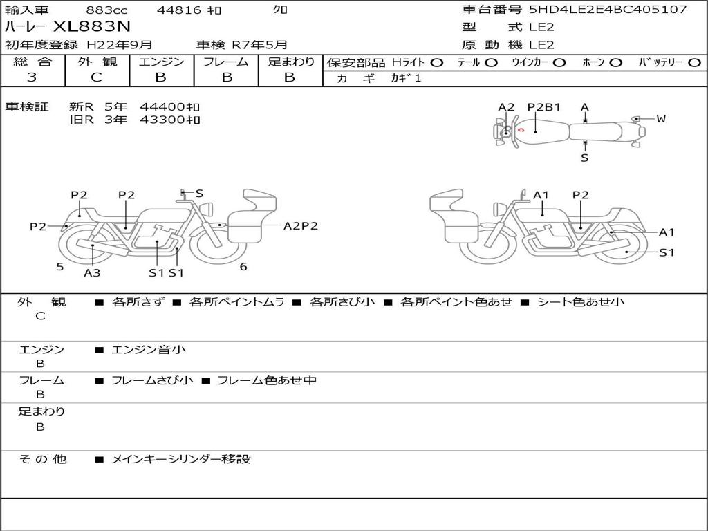 | Номер рамы / VIN | 5HD4LE2E4BC405107 |