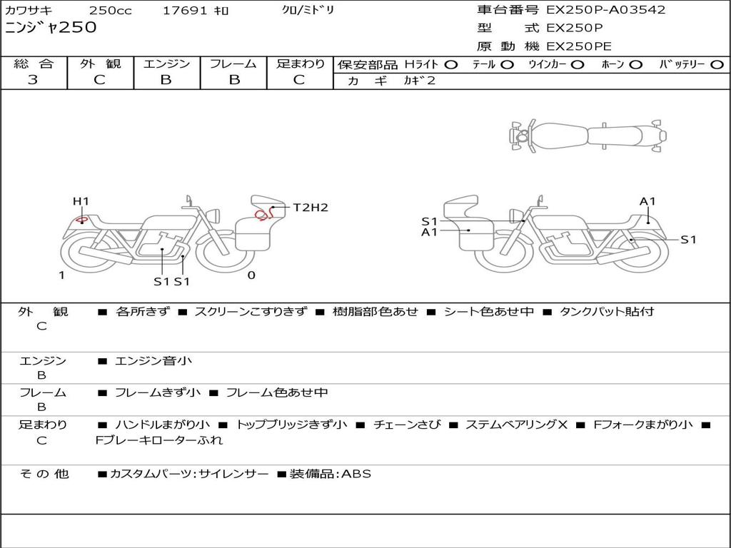 | Номер рамы / VIN | EX250P-A03542 |