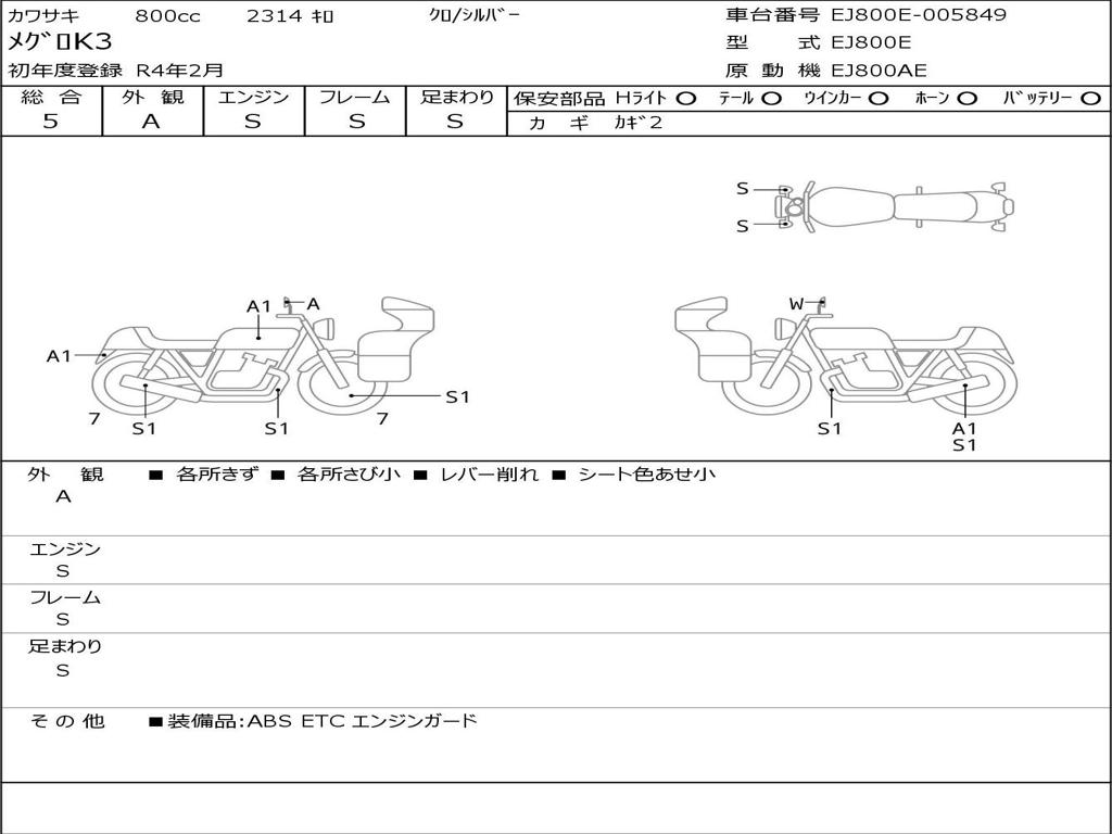 | Номер рамы / VIN | EJ800E-005849 |