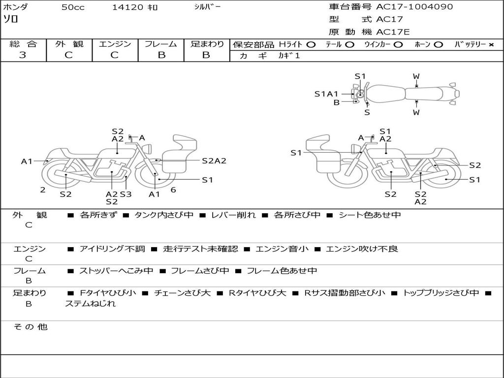 | Номер рамы / VIN | AC17-1004090 |