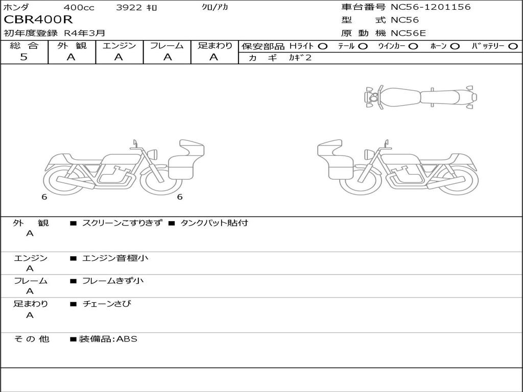 | Номер рамы / VIN | NC56-1201156 |