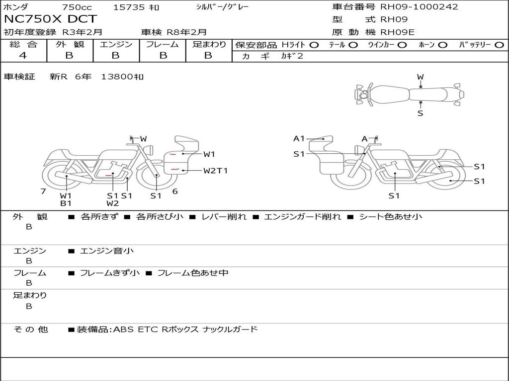 | Номер рамы / VIN | RH09-1000242 |