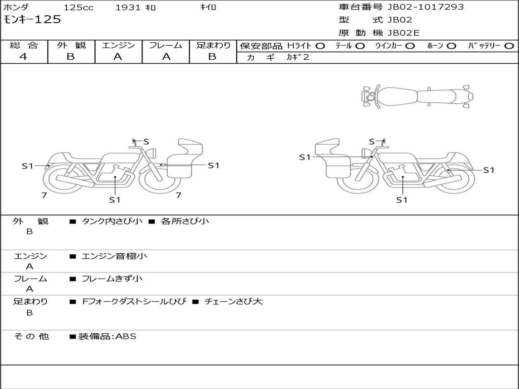 | Номер рамы / VIN | JB02-1017293 |