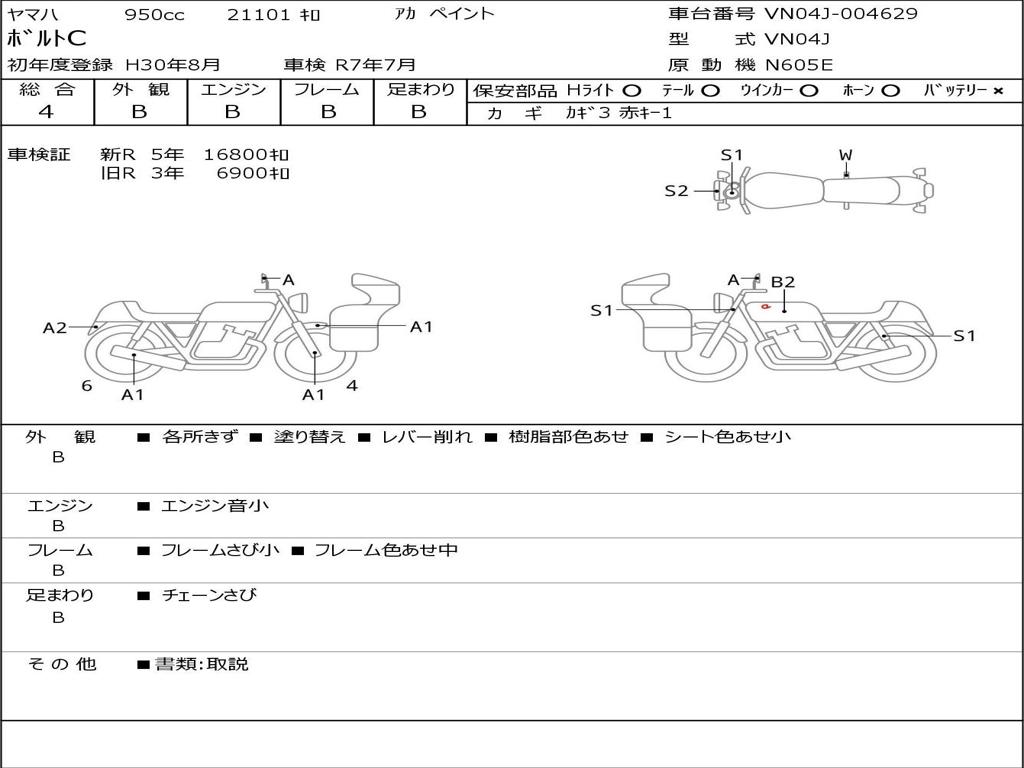 | Номер рамы / VIN | VN04J-004629 |